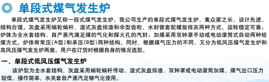 單段式煤氣發(fā)生爐